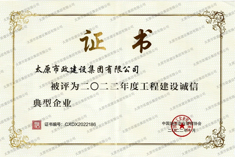 資質證書 營業執照 2022年度市政工程最高質量水平評價_H5-1路道路及配套工程(二標段) 2022年度工程建設誠信典型企業 中國施工企業管理協會_AAA級企業信用等級 2022年度全國市政工程建設優秀質量管理小組三等獎_''核動力QC小組”提高瀝青路面壓實度合格率”